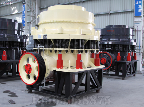 工作時(shí),電動(dòng)機(jī)的旋轉(zhuǎn)通過(guò)皮帶輪或聯(lián)軸器、圓錐破碎機(jī)傳動(dòng)軸和圓錐破碎機(jī)圓錐部在偏心套的迫動(dòng)下繞一周固定點(diǎn)作旋擺運(yùn)動(dòng)。從而使破碎圓錐的破碎壁時(shí)而靠近又時(shí)而離開(kāi)固裝在調(diào)整套上的軋臼壁表面,使礦石在破碎腔內(nèi)不斷受到?jīng)_擊,擠壓和彎曲作用而實(shí)現(xiàn)礦石的破碎。電動(dòng)機(jī)通過(guò)傘齒輪驅(qū)動(dòng)偏心套轉(zhuǎn)動(dòng),使破碎錐作旋擺運(yùn)動(dòng)。破碎錐時(shí)而靠近又時(shí)而離開(kāi)固定錐,完成破碎和排料。