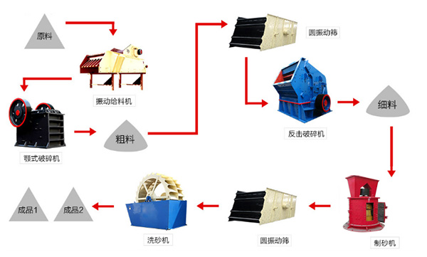 在砂石料生產(chǎn)線上,所需的設(shè)備主要有振動(dòng)給料機(jī)、鄂式破碎機(jī)、反擊式破碎機(jī)(或圓錐破碎機(jī))、立式板錘式制砂機(jī)、輸送帶、振動(dòng)篩以及除塵設(shè)備??筛鶕?jù)不同的物料大小、產(chǎn)量、成品大小增減設(shè)備,也有大、中、小型的設(shè)備滿足客戶不同的生產(chǎn)需求。不同的生產(chǎn)線配置價(jià)格也差別很大。